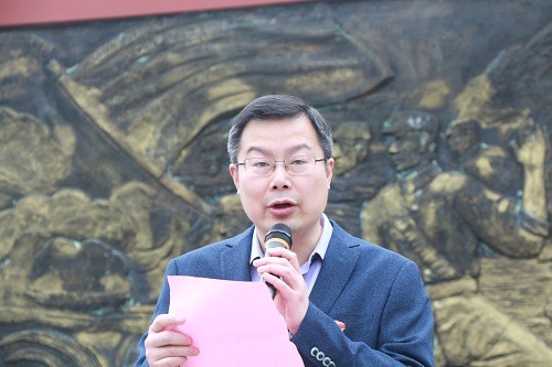 学生处处长刘平作了讲话,他寄语九院团员青年以先烈为榜样,铭记历史,不忘初心,将红色基因代代相传,做好广大青年的表率。希望党员干部要做青年学生的思想引领者、成长服务者、校园文化建设者,一起为九院添彩。