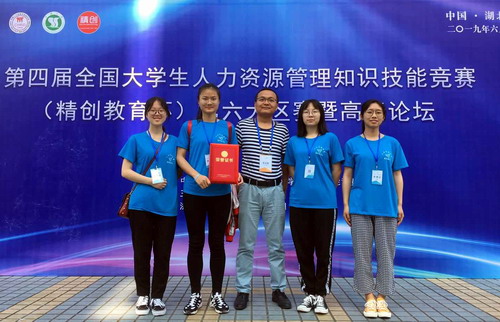 6月1日至2日,第四届全国大学生人力资源管理知识技能竞赛(经创教育杯)第六赛区在三峡大学举行。经管学院人力资源管理专业易海波、张宁芮、杨雪和林茜茜四名同学组成的九江学院“山江湖”代表队在孙静、黄永鹏两位指导老师的带领下荣获二等奖。
