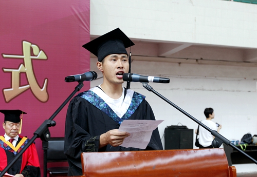 “前辈告诉过我们,没有比脚更长的路,没有比人更高的山,但不论我们走到哪,无论我们走多远,我们都不会忘记自己是九院人”。“四年来,做你们的良师,也做你们的益友。见证你们的成长,我们感到由衷的高兴!” 初见不知画中意,再看已是画中人。曾经朝夕相处的老师、同学,今日就要别离。临床医学院A1415班郑振明和外国语学院英语教授周志高分别作为毕业生代表和教师代表,用他们的心声回忆昔日大学生活的熠熠光辉。