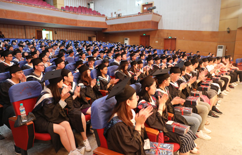 毕业典礼在雄壮激昂的国歌声中拉开帷幕。