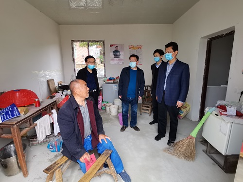 2020年3月23日,校长刘晓东在副校长查振华陪同下,来到学校扶贫点武宁县官莲乡东山村指导脱贫攻坚工作,并走访慰问兜底贫困户。武宁县委常委、宣传部部长刘斌,官莲乡乡长邓卢武等陪同。
