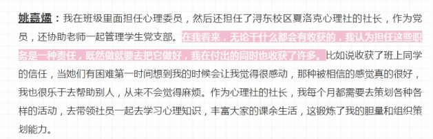 姚嘉燏:我是有考研的打算,现在正处于实习阶段,也在备考之中。因为想要提高自己,无论是学习,还是其他各方面,都希望自己能够去学习到更多。