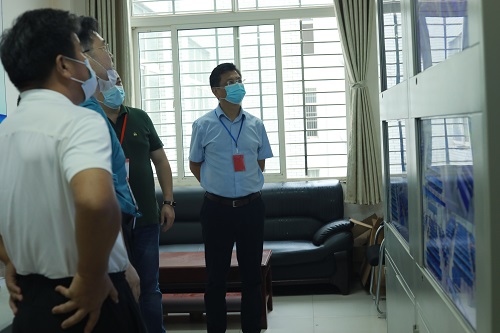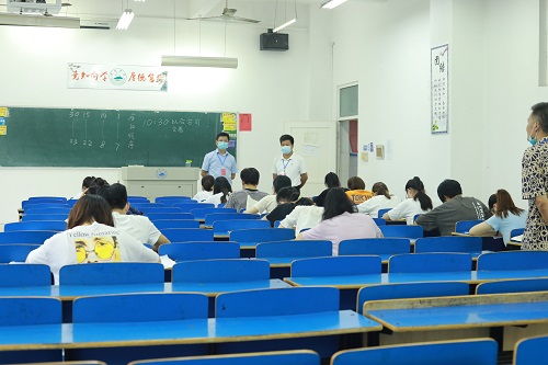一大早,刘晓东一行冒雨来到香远楼考点,检查考生现场身份审核情况,认真听取教务处负责同志对考务、疫情防控、后勤保障等工作的汇报。考试期间,刘晓东、陈春生一行来到考场监控室,通过视频查看考场整体情况,要求工作人员认真履职,及时发现汇报处理突发事件;深入考区教室逐一巡视,检查考场纪律、教师监考等情况。