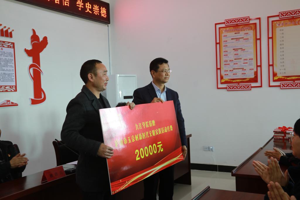 为庆祝中国共产党建党百年,深入开展党史学习教育,3月24日下午,我校与庐山市白鹿镇玉京村共同开展的“学百年党史 促乡村振兴” 文明实践活动举行。校党委副书记、校长刘晓东出席活动,并向玉京村赠送文明实践活动经费。省委宣传部驻庐山市白鹿镇玉京村第一书记赖政兵,我校党委委员、宣传部部长冯健,团委负责人,马克思主义学院6名博士教授和团委选派的4名大学生组建成的党史宣讲团成员、玉京村乡村干部代表、党员群众代表参加启动仪式。庐山市市委常委、统战部长程剑致辞。