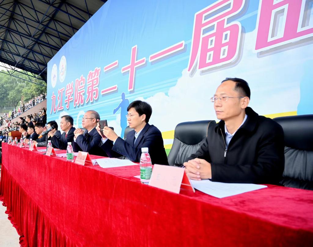 在运动员代表、裁判员代表宣誓后,校党委书记赵伟宣布:九江学院第二十一届运动会开幕!