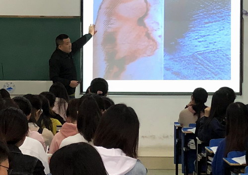 王老师从龋病分类开始讲解,引导学生进入龋病的临床表现,再深入剖析其病理变化。整堂课,王老师结合大量图片、语速适中、讲课通俗易懂。车向新院长认真记录并关注学生学习状态。