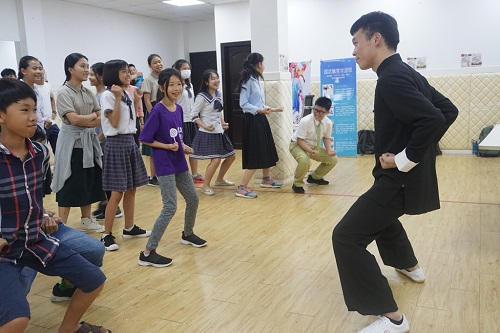 随后,张东洋老师进行了太极拳经典动作的示范,演示了左右野马分鬃、金鸡独立、揽雀尾、十字手等动作。同学们一边看,一边忍不住模仿起来,每个同学都全神贯注,十分投入,并纷纷表示对中国文化很感兴趣,下次活动还会参加。