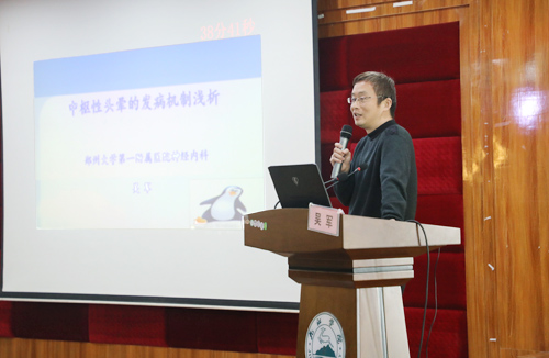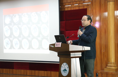 临床医学院/附属医院党委副书记、副院长殷小平在会上肯定了神经内科质控中心近几年的工作成绩,希望继续保持优良传统。他说,中国脑血管病的预防现状不容乐观,提高医疗质量规范化非常关键;神经内科质控中心和神经病学委员会应当积极提高我市及周边地区各级医院神经内科疾病的诊疗水平,加强质控工作和脑卒中的筛查防治,增进各医院之间的交流,促进区域内神经内科专业快速发展。