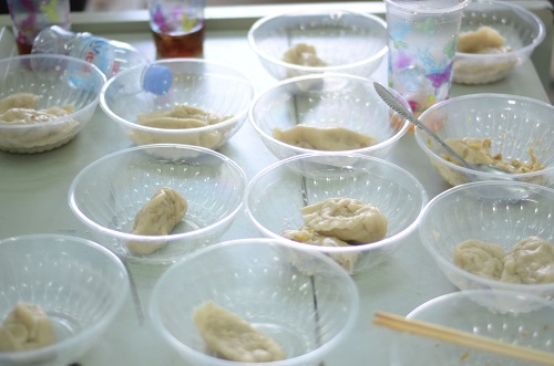 一大早,志愿者老师们便去市场采购了猪肉、白菜、洋葱、各种调料等包饺子所需要的食材。活动中,老师们先和学生们一起洗手,并提醒学生们取下手上的戒指、手链等饰品。随后,赵子正老师教学生们如何切肉、做肉馅,乔亚晓老师则带领学生一起和面、擀饺子皮。准备就绪,李鸿泽老师开始给大家示范如何包饺子。学生们都很聪明,很快地掌握了包饺子的技巧,大家齐心协力,分工明确,很快就包好了饺子。过程中,老师们还向学生解释了饺子“更岁交子”的寓意,强调了其在中华文化中的重要地位。