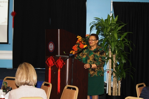 萨凡纳州立大学校长多兹尔博士发表了热情洋溢的讲话,她祝大家中国新年快乐,并大加赞赏孔子学院在中美文化交流和两校友好交往方面所作出贡献。