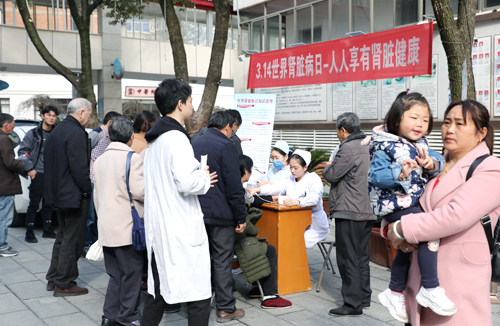 今年的3月14日是第14届世界肾脏病日,当天,临床医学院/附属医院肾内科在院内门诊大楼前开展了世界肾脏病日免费义诊活动,吸引了大量肾病病友、家属及市民问诊和参与。