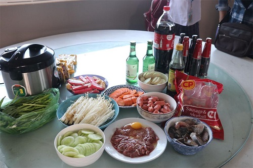 居住在热带国家,最爽的不是口渴了喝一杯冰镇饮料,而是躲在空调屋,却能吃上热腾腾的中国火锅,那酸爽,体验过的学生都知道!柬埔寨皇家科学院孔子学院中级C班热闹地举办了中国美食文化体验活动。期末考试前,志愿者教师魏梦莉老师给学生承诺:“好好复习,考得不错就给你们做中国火锅!”学生们听说老师要做火锅,瞬间沸腾了,纷纷投入到紧张的备考中。魏梦莉老师为这顿中式火锅准备了很久,亲自了解学生的口味以及他们爱吃的菜品,学生们第一次尝试中国老师自制的火锅,很是兴奋。火锅的香味伴着同学们的欢声笑语,一下子拉进了师生间的距离。