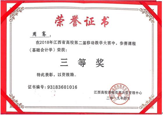 4月23日,江西省高校课程资源共享联盟年会暨学术交流研讨会在南昌国际博览城隆重召开,会上,对省第二届高校移动教学大赛获奖教师和优秀组织奖获奖学校进行了颁奖,我校周骞、董莎莎两位教师荣获三等奖,傅江宏、黄健、何刚、许成锋、袁荣华等 5名教师荣获“优秀教师”奖项,张梅等20名教师荣获“教学先锋”奖项,学校获大赛“优秀组织奖”。