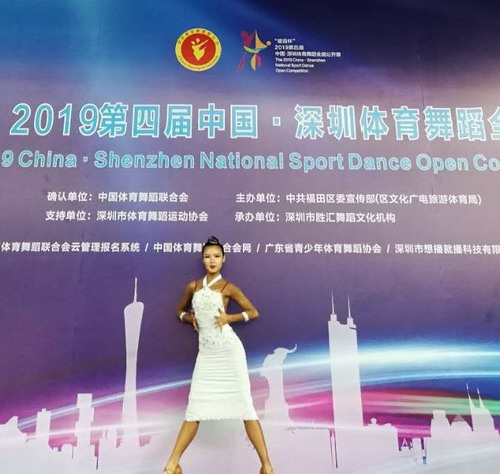 “福田杯” 2019第四届中国.深圳体育舞蹈全国公开赛于5月2---4日在深圳福田体育公园隆重举行,本次比赛是由深圳市福田区文体局主办,中国体育舞蹈联合会确认的官方大型权威比赛,共吸引了全国300个参赛队伍,6000多名参赛学生参加。我校体育学院体育舞蹈专业大一新生吴嫔在指导老师熊晓蔚的带领下参加了本次比赛,并拿下大专院校单人B组拉丁舞(C、R)和大专院校单人单项R第二名的好成绩。