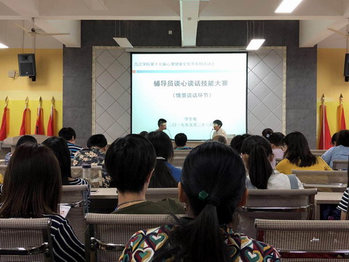 来自会计、旅游、药生等10个二级学院的辅导员参加了本次比赛。参赛选手在赛前抽签决定出场顺序,同时随机抽取情景谈话的题目。