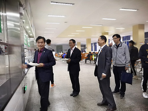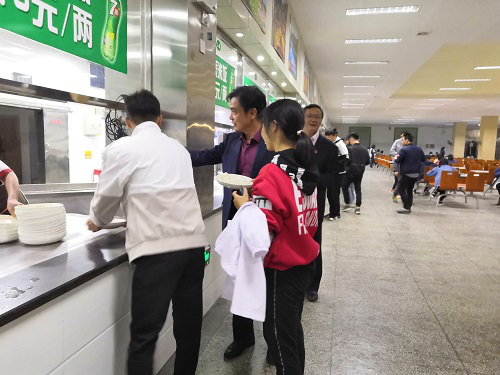 随后,杨副校长与学生一起走进食堂,一起排队买饭,亲自为学生刷卡并共进晚餐。用餐期间,杨副校长仔细了解了学生的饮食习惯、日常生活开销等,切身感受了学生心底最真实的声音;分享了自己读书时的故事。