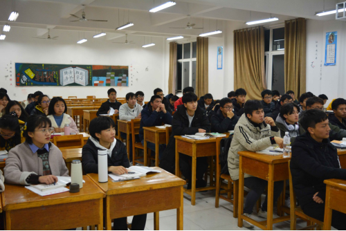 为了提高学生学习能力,全面贯彻党的教育方针。2019年12月1日20:00,组织人事部部长王殿元来到文友楼317教室为联系班级理A1921班讲授思政课。理学院学生科科长周梓哲,A1921班班主任朱天竹参与听课。