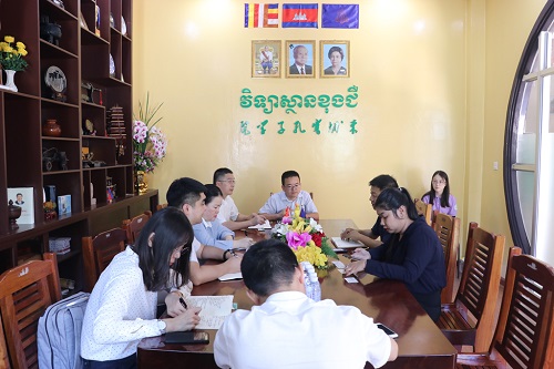 随后,陆文辉主任对孔子学院的运营和活动模式提出了一些疑惑,两位院长进行了耐心解答。听了两位院长的回答,陆文辉主任进一步表达了合作意向,她说如果能够与孔子学院进行合作,可以进一步促进中柬文化交流,增进两国友谊。柴院长指出,孔子学院一直致力于中柬文化的交流,在交流中相互理解,“一带一路,民心相通”,孔子学院的老师就是在教学过程中与学生进行心灵沟通,在“面”上做得更广,只有沟通了才能理解,只有在理解的基础上才能推进“命运共同体”。柴院长提到,在苏院长的支持下,孔子学院也举办了许多活动,比如“江苏杯演讲比赛”、“汉语桥比赛”和各类中柬文化活动等,每年也会邀请中柬专家进行学术沟通,增进双方友谊。
