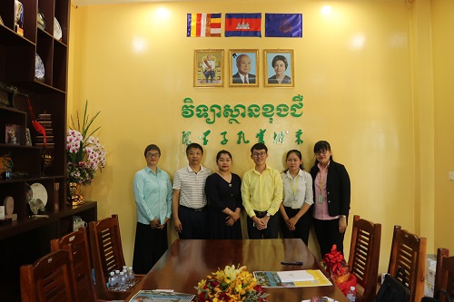 12月24号下午,加华集团总经理助理林健安先生、人事主管黄爱玲女士、高级培训专员罗碧玉女士一行3人访问柬埔寨皇家科学院孔子学院。孔子学院中方院长柴克清、柬方院长苏碧娜(Vuth Sopheakna)、公派教师甘敏老师在孔子学院一楼会议室接待到访来宾,双方展开友好会谈。