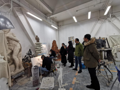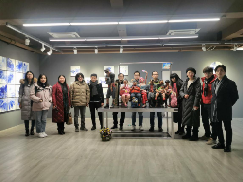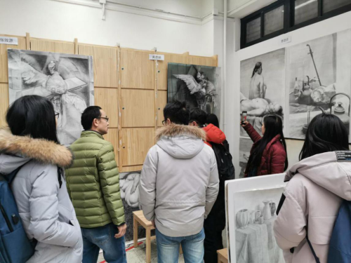当天晚上,观展团在谭丹武老师的带领下考察了中央美术学院雕塑系各个工作室的教学,随后参观了中央美术学院黄山博士的个人雕塑作品展,各位教师与艺术家对其作品进行了深入的交流。