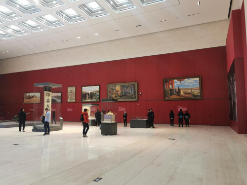 下午,观展团一行来到了中国国家博物馆,馆内有多个展览,主题多为庆祝中华人民共和国成立70周年的系列展览,这些作品所积累的不仅是一部印记中华民族在中国共产党领导下曲折坎坷、奋进抗争、革新发展的视觉简史,更以其厚重的图像谱系和独特的艺术语言彰显着中国当代文化艺术的自觉与自信。
