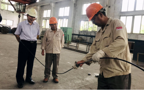 奥盛(九江)新材料有限公司的总工程师、教授级高工游胜意拿着钢筋盘条的接头处介绍说,自从解决了盘条接头的断头率问题,作业率提高了,企业的产量上去了,工人拿的工资也多了,也没有那么多累了,“原来只要盘条一断头,就得停机,工人们要重新装盘条,一搞就要花费2-3个小时”。奥盛(九江)新材料有限公司是九江学院机械与材料工程学院的实习基地,校企之前就有过卓越工程师培养方面的合作。2019年9月,市科协搭台,启动帮扶企业“双百行动”后,九江学院张德勤教授了解到企业在“断头率”方面存在的技术难题,带领几名老师与学生组成攻关团队,经过半年多的不断实验,终于攻克了盘条接头容易断头的技术难关,解决了企业的难题。九江二桥、鄱阳湖二桥、南昌八一大桥、虎门二桥及广东番海大桥、安徽巢湖大桥、上海珠湾大桥用的都是该公司生产的缆索。