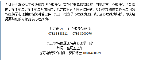 2020年注定是不平凡的一年,中华儿女众志成城抗击新型冠状病毒肺炎疫情。随着确诊人数的不断攀升,各地医护人员都在积极响应国家号召,“若有战,召必回,战必胜”!然而,面对越来越多的病人,面对传染性很强的新型病毒,抗战在一线的医护人员也有着巨大的工作压力,持续处于强应激状态,挑战着身体和心理的极限。然而作为普通人的他们,脱下战袍他们也是血肉之躯。此时此刻该如何为我们的白衣天使们做好心理自助,预防心理创伤和应急障碍等心理问题呢?日前,附院官微专程访谈了九江学院精神医学教研室特聘专家吴洪军教授。