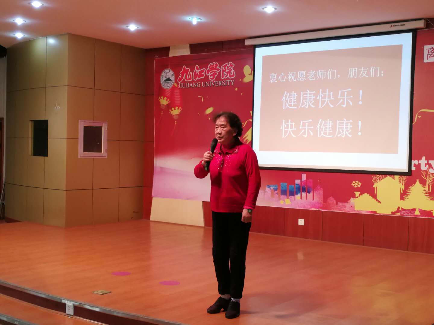 在欢声笑语中,退休教师们纷纷拍照、录像,对活动进行现场“直播”。原副校长李炎生老师也积极拍照并即时传上微信群,他在编辑的照片上配上文字向大家致节日祝福:“祝福大家在九江学院大家庭越活越精彩,莫道桑榆晚,为霞尚满天,夕阳无限好,黄昏景更佳,衷心祝愿老同志身体健康,万事如意,全家幸福吉祥”。