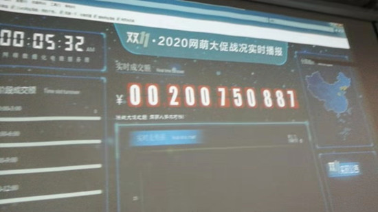 走进实训教室,挂在教室中间的大屏幕显示着上海网萌网络科技有限公司所代理店铺“双十一”销售营业额的界面,同学们聚精会神地回复着顾客的各种咨询,繁忙中透着有序,噼噼啪啪的键盘声显示,他们已经能从容胜任这项工作了。11日零点的钟声刚刚一响,大屏幕上的数据就开始迅速的跳动,2分46秒突破一个亿、5分30秒突破两亿、8分钟突破3个亿......, 这就是“双十一”,这就是电商的强大力量。这一刻,电商师生一起感受着电商行业的蓬勃发展。