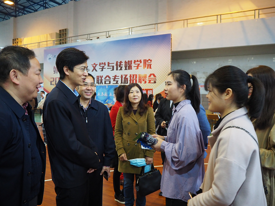 上午九点,招聘会开始。校领导现场了解了招聘会的相关情况,走访了与九江学院有稳定合作关系的用人单位,询问了疫情对外贸行业和教育培训行业的冲击与对策、招聘岗位、招聘职位、工资待遇等情况,并就如何加强校企合作、促进学科与教学改革进行了深入交流。