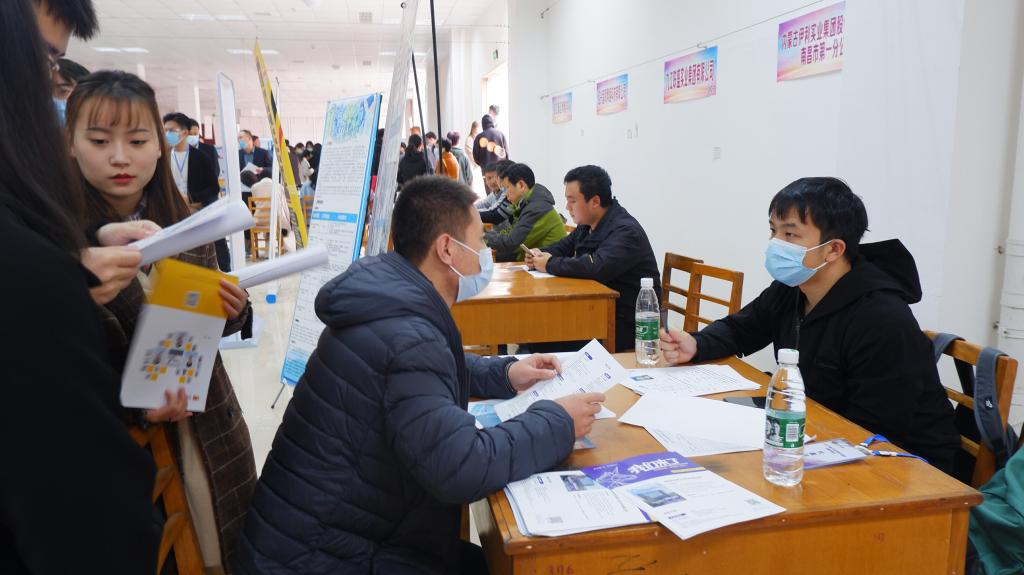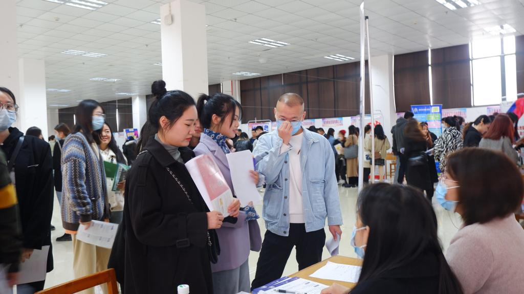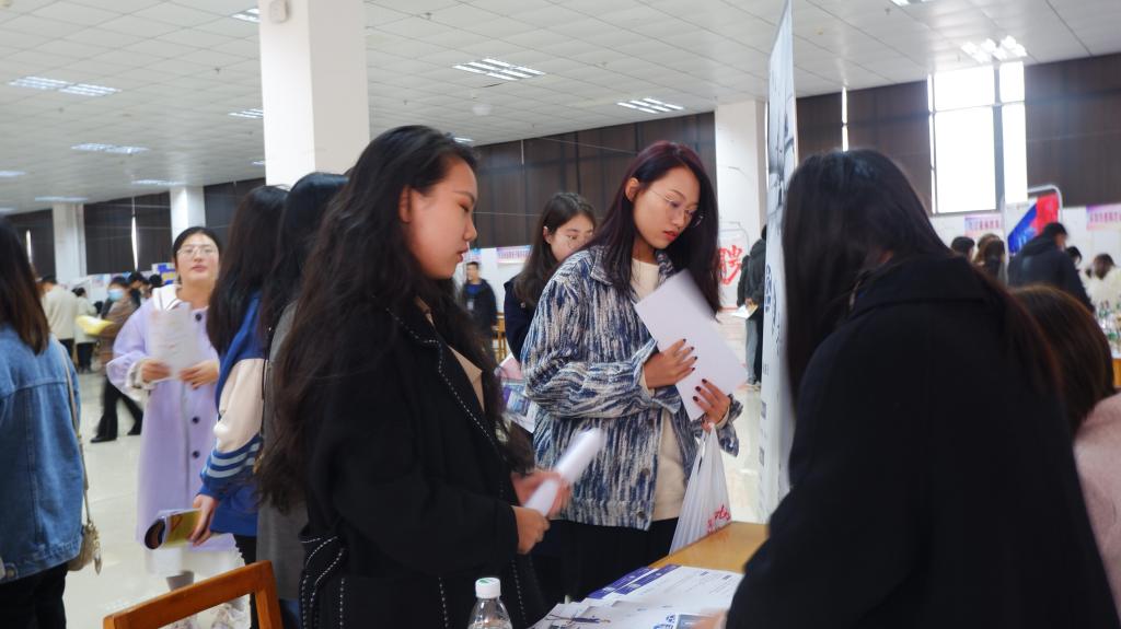 上午九点半,招聘会开始。同学们手持简历,积极到招聘单位展位前投递简历,了解用人单位的具体情况。