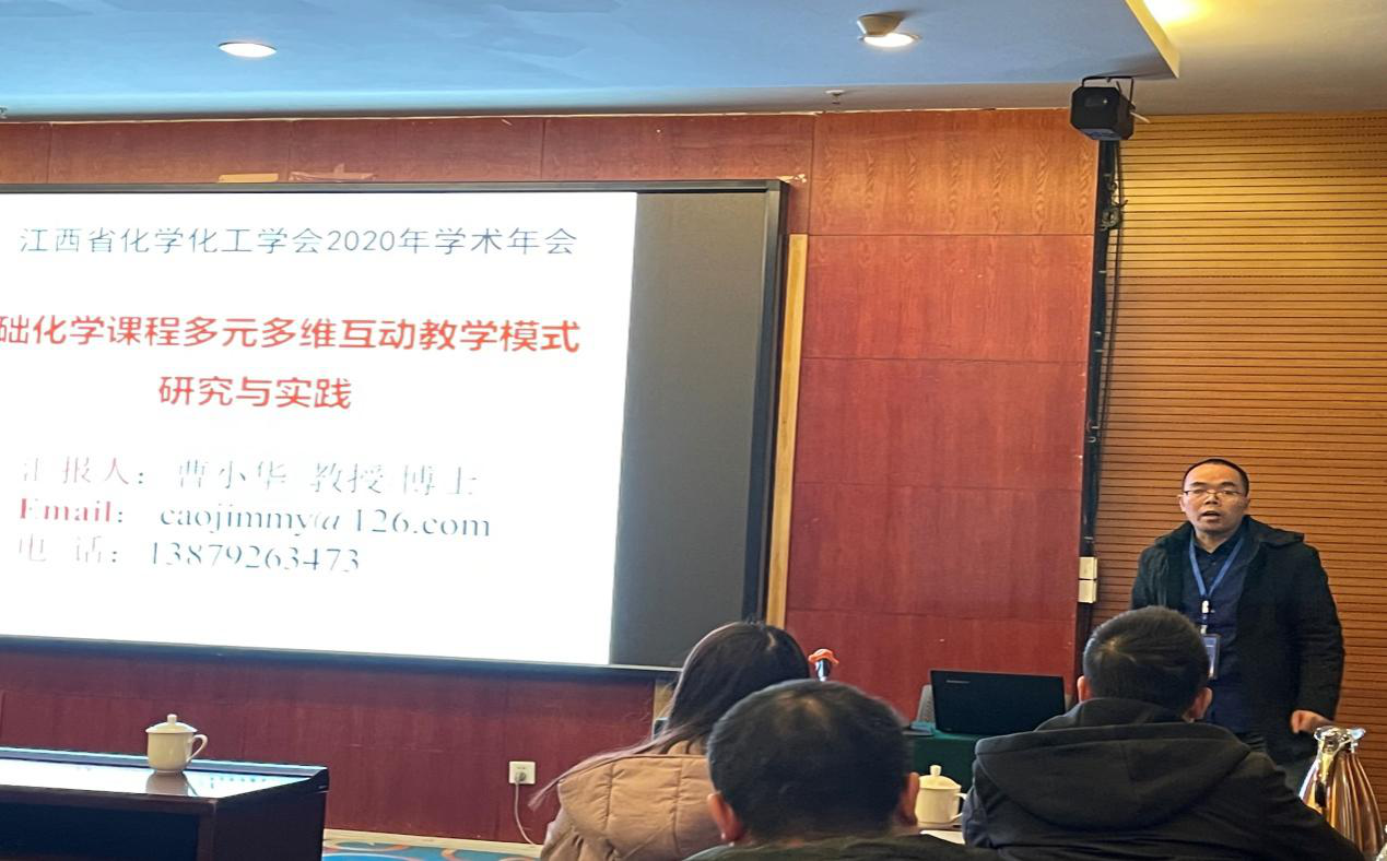 12月4日至6日,江西省化学化工学会2020年学术年会在江西师范大学白鹿会馆召开,我校化学化工学院曹小华教授、孙剑奇博士、王常清博士等一行9人应邀参会。曹小华教授和王常清博士分别应邀作口头报告。