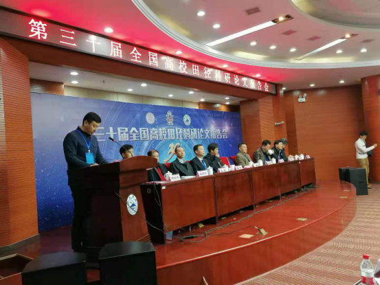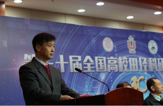 我校体育学院院长段宝斌主持会议。大体协田径分会秘书长、清华大学体育部书记马新东致开幕辞。