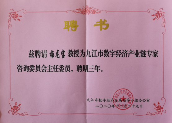 我校梅龙宝教授受聘担任九江市数字经济产业链专家咨询委员会主任