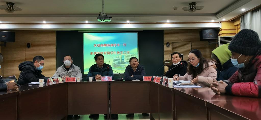 为了了解我校留学生的实习情况,提高安全和疫情防控意识,1月8日下午,国际交流学院在庐峰校区举行了附属医院实习的留学生安全教育和疫情防控会议。副校长杨耀防,附属医院和国际交流学院负责同志、相关工作人员及在附属医院实习的26名留学生等参加了会议。