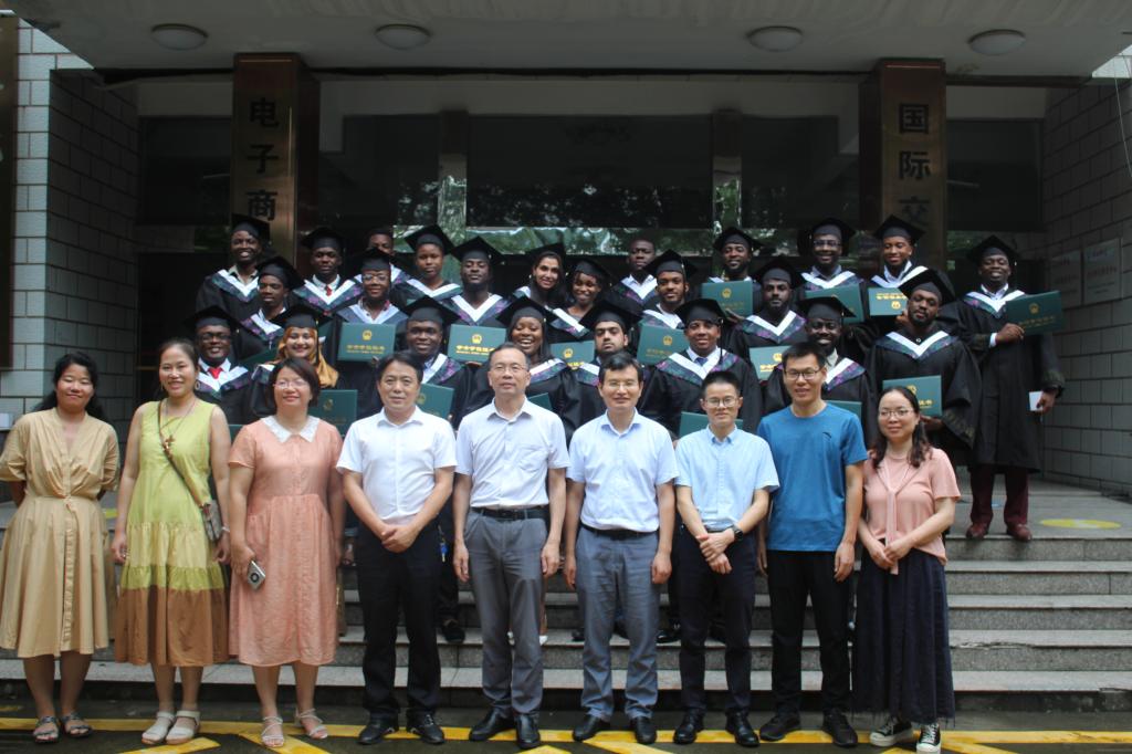 7月2日下午,国际交流学院在竞秀楼举行2021届留学生毕业典礼。今年,我校共有来自巴基斯坦、柬埔寨、加纳、喀麦隆、尼日利亚、纳米比亚、赞比亚、肯尼亚、莫桑比克、南苏丹、索马里、津巴布韦、马拉维等13个国家的95名留学生圆满完成学业,顺利毕业,获得学士学位。