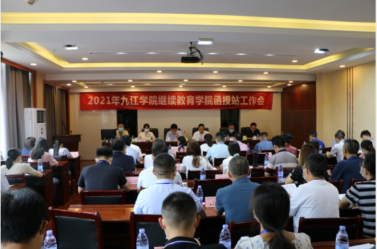 7月6日,2021年九江学院继续教育学院函授站工作会在濂溪宾馆二楼会议室召开。副校长夏启国出席会议并讲话,来自省内外34家函授站的负责同志及工作人员、继续教育学院全体教职工参加会议。