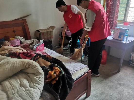 此外,队员们一行人还去慰问了村里两位七、八十岁的孤寡老人吴木姣、黄火滚,给他们带去了慰问品。大家关切询问了老人家的生活情况和身体状况,并为老人家里打扫了卫生。
