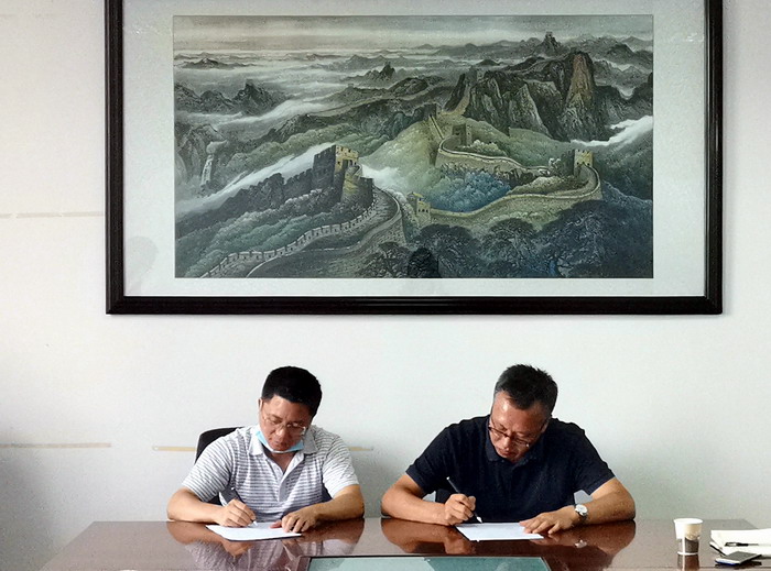旅游与地理学院院长李松志与九江市测绘地理信息有限公司董事杨飞代表双方签订协议