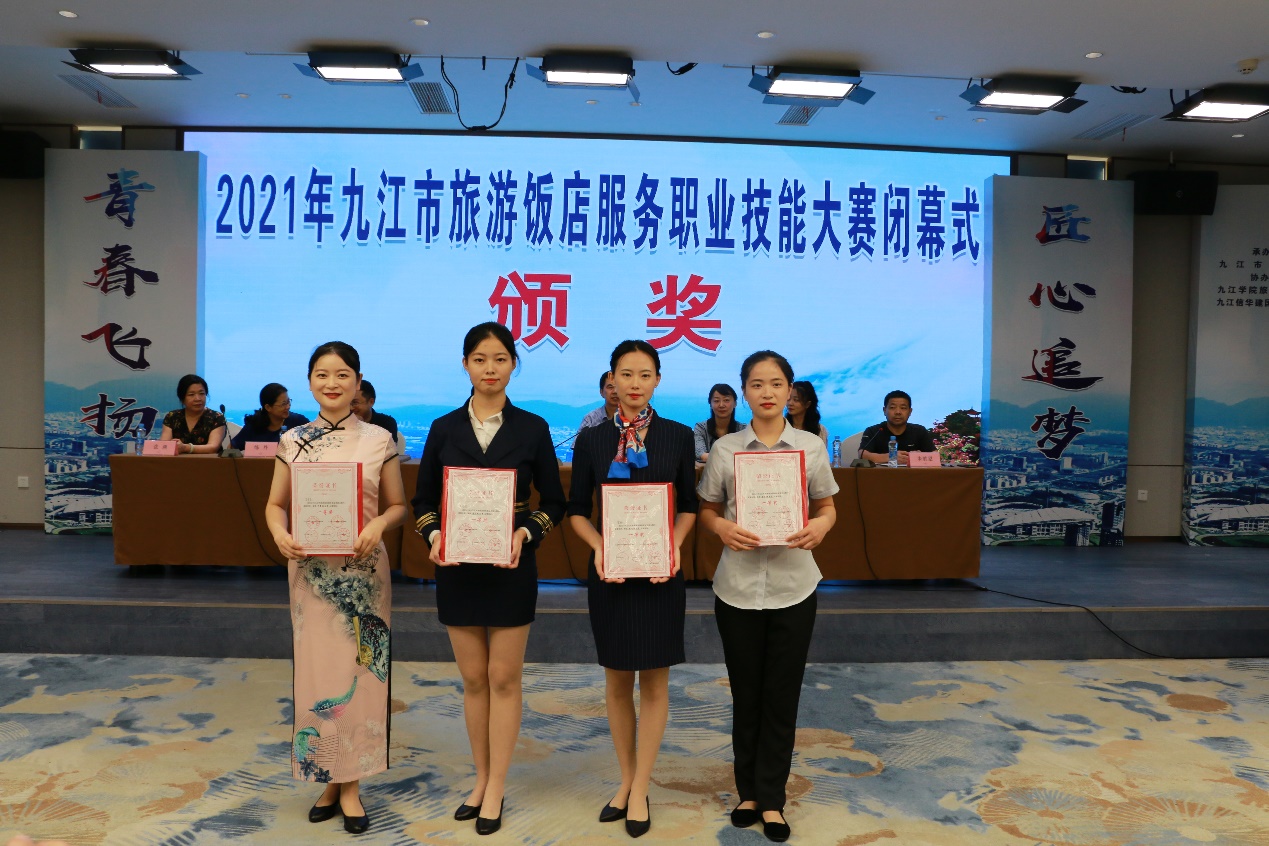 9月27日,2021年九江市旅游饭店服务职业技能大赛在九江信华建国酒店举行。旅游与地理学院派出了13名同学参加了全部四项比赛,经过激烈争夺,该院参赛同学包揽了本次大赛四个一等奖,此外,还获得了1个二等奖和8个优胜奖,充分展示了该院酒店管理专业的人才培养效果。