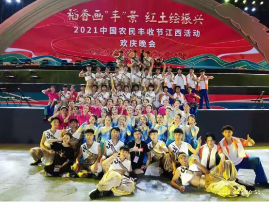 9月25日,由江西省农业农村厅、九江市人民政府主办,江西广播电台、江西文化演艺发展集团、彭泽县人民政府协办的“百年风华感党恩、产业兴旺庆丰收——2021中国农民丰收节江西活动开幕式”在九江市彭泽县举行,我校艺术学院音乐、舞蹈专业近300名师生承担并圆满完成了开幕式和晚会演出任务,他们精彩的表演和大型活动中吃苦耐劳的精神获得了主办方的高度评价。