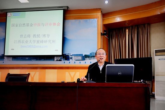 10月27日下午,江西农业大学副校长曾志将教授应邀到我校作国家自然科学基金申报辅导讲座。我校理工医学科博士、教授和副教授及科研爱好者等100余人参加本次讲座。副校长严平主持讲座。