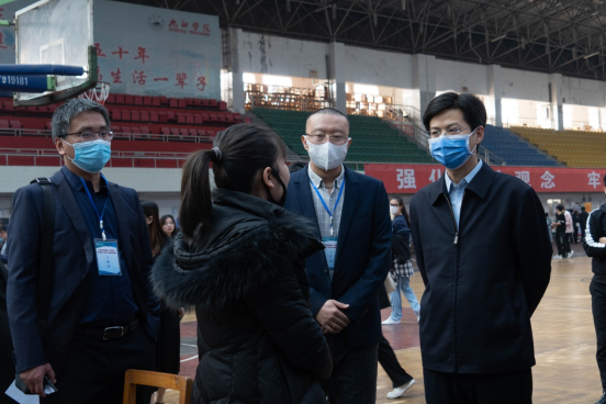 在招聘会现场,夏启国、查振华查看了招聘单位信息,并了解了此次招聘会的相关情况。他们就毕业生的就业前沿、招聘岗位、工资待遇和人才需求等问题与招聘单位人员亲切交流,还深入了解毕业生求职状况和具体需求,鼓励毕业生迎难而上,转变择业心理,以更加积极的心态和求职行动应对当今时代下所带来的就业挑战。
