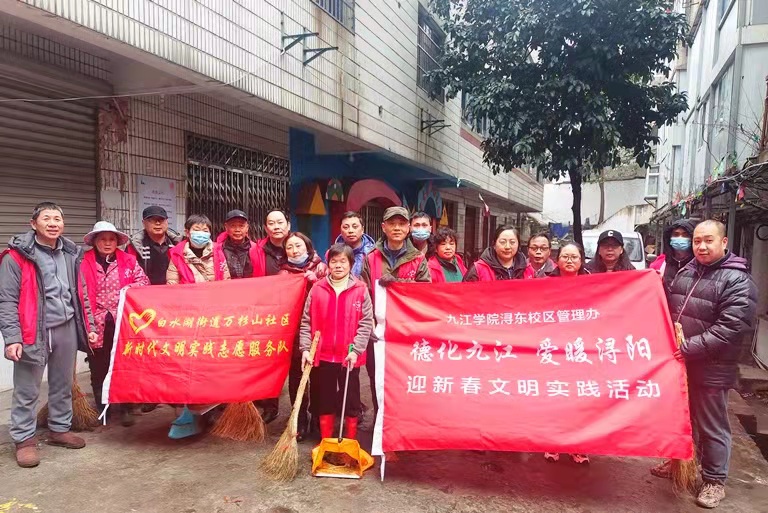 虎年新春即将来临,为营造欢乐祥和的新春氛围,不断巩固党史学习教育成果,进一步推动九江市第七届全国文明城市创建工作取得实效,浔东校区深入开展“德化九江 爱暖浔阳”迎新春文明实践系列活动。
