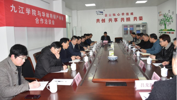 华林特钢集团公司常务副总经理梁先松介绍了公司的基本情况、发展规划以及技术和人才需求;公司董事长陈林提出共建产业科技创新联合体、人才培养、科技攻关等方面的合作建议。在了解公司需求后,我校材料学院、机械学院和创新创业学院负责人分别介绍了合作方案,并表示将尽快按照产学研合作备忘录推进合作事宜。