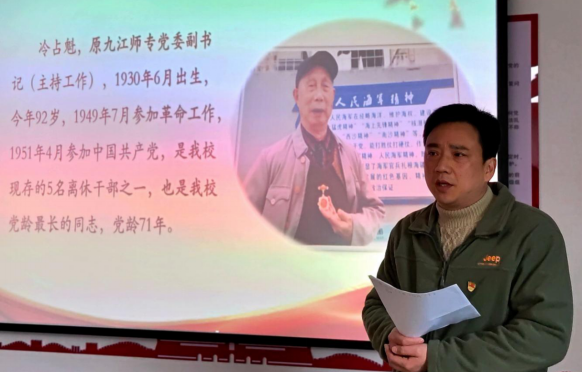 支部党员樊利斌结合习近平总书记重要讲话精神,讲述自己身边的榜样——离退休老党员的感人事迹。