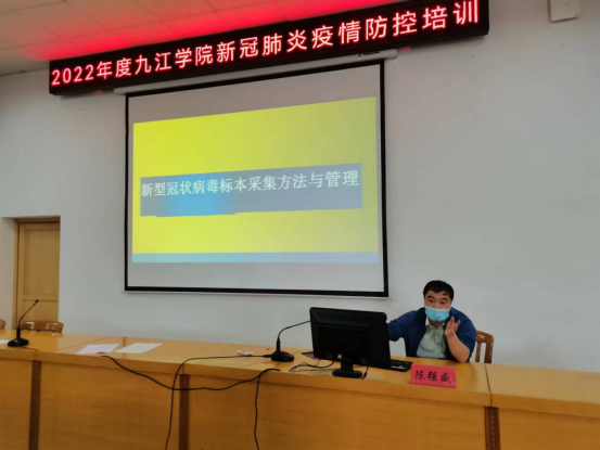 培训会上,大家一起观看了《九江学院疫情防控应急演练》视频;校医院预防科王秋慧解读了《高校新冠肺炎疫情防控技术方案(第五版)》及目前疫情防控的形势;医务部陈强盛讲解《新型冠状病毒标本采集方法与管理》;护理部李浔就《学校新冠肺炎疫情防控知识--校园消毒》;护理部徐金慧讲解并演示防护服的穿脱及操作流程,重点向大家从个人防护、科学消毒、综合防控、开学要点、风险摸排等方面对新冠肺炎疫情的形势与防控要求进行了详细讲解。