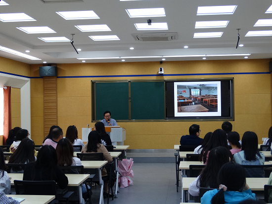 宣传会上,李然紧扣“匠心育人守初心,援疆扶贫担使命”这一主题,结合成长经历向同学们讲述了扎根基础教育的育人故事、两次援疆的追梦故事、五年精准扶贫的振兴故事。宣讲期间,李然还结合自身三十年的高中英语教育经验,以轻松幽默的话语,生动形象的表述,从不同角度向同学们阐释了对外语专业、敬业精神和家国情怀的认识。会后,李然和外国语学院师生还就“外语师范生人才培养模式”进了教育思想交流讨论。
