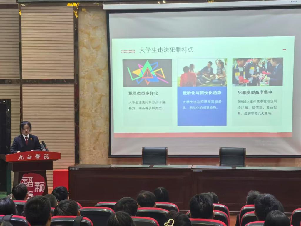 10月29日晚,为筑牢青年学生法律意识,增强青年学生法治素养,拓宽学生法治教育实践路径,我校学生工作处联合九江市濂溪区人民法院在香远楼报告厅举办院校法治宣传教育共建活动。我校文学院等十个二级学院的学工干部,濂溪区人民法院员额法官、法官助理以及学生代表共300余人参与本次活动。