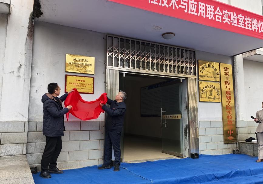 上午10时,挂牌仪式在九江学院建筑工程与规划学院实验室举行。九江学院党委委员、副校长鲁卫东与德安县委组织部副部长金胜明共同为实验室揭牌,标志着实验室正式投入运行。
